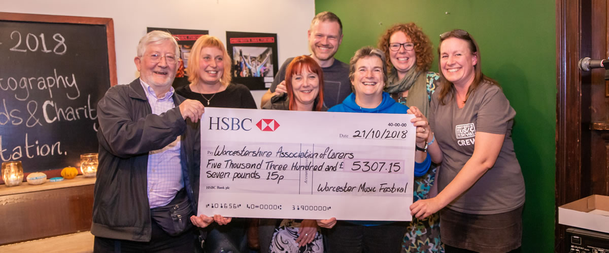 Worcester Music Festival presented a cheque for £5307.15 to their chosen charity, Worcestershire Association of Carers.